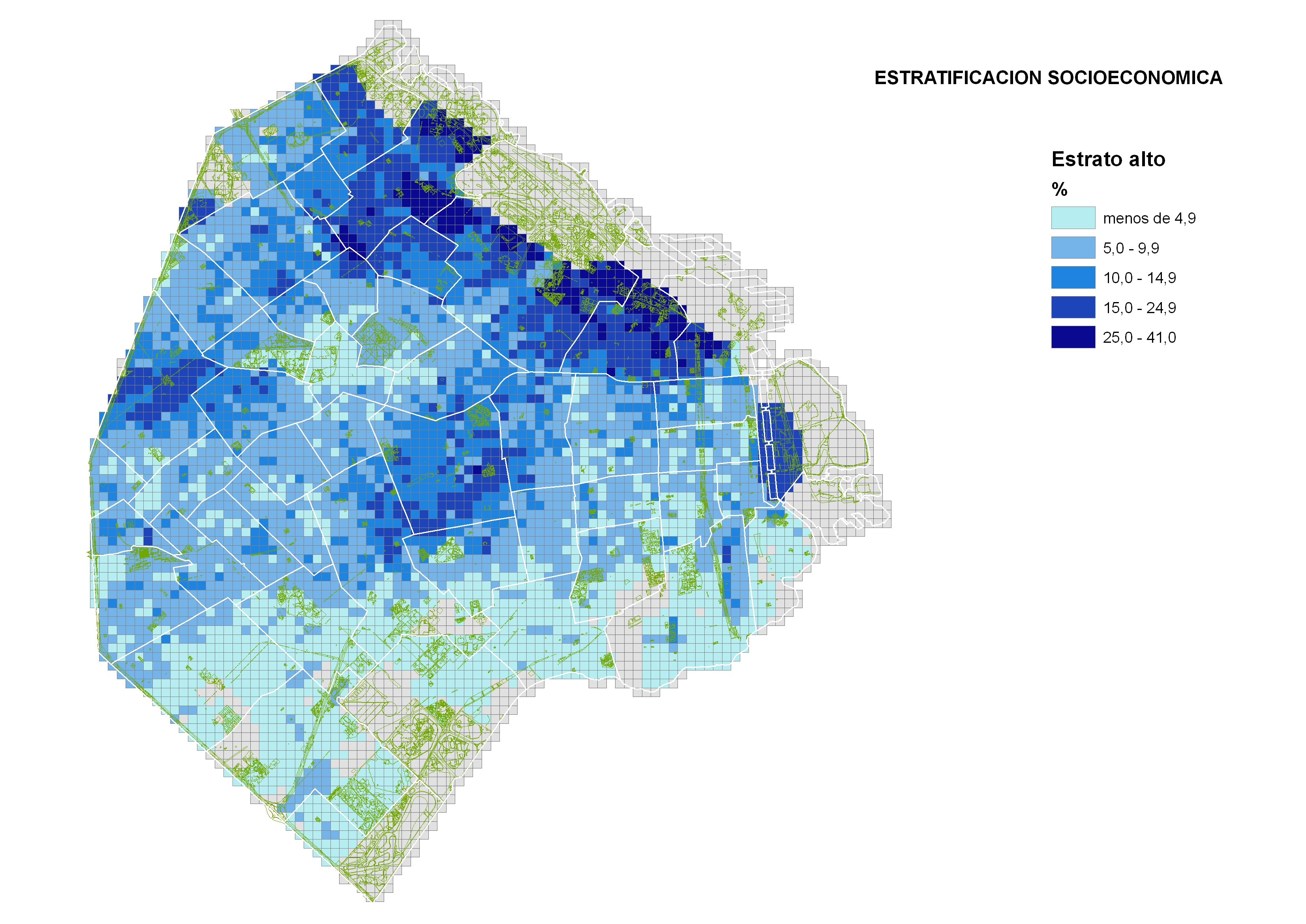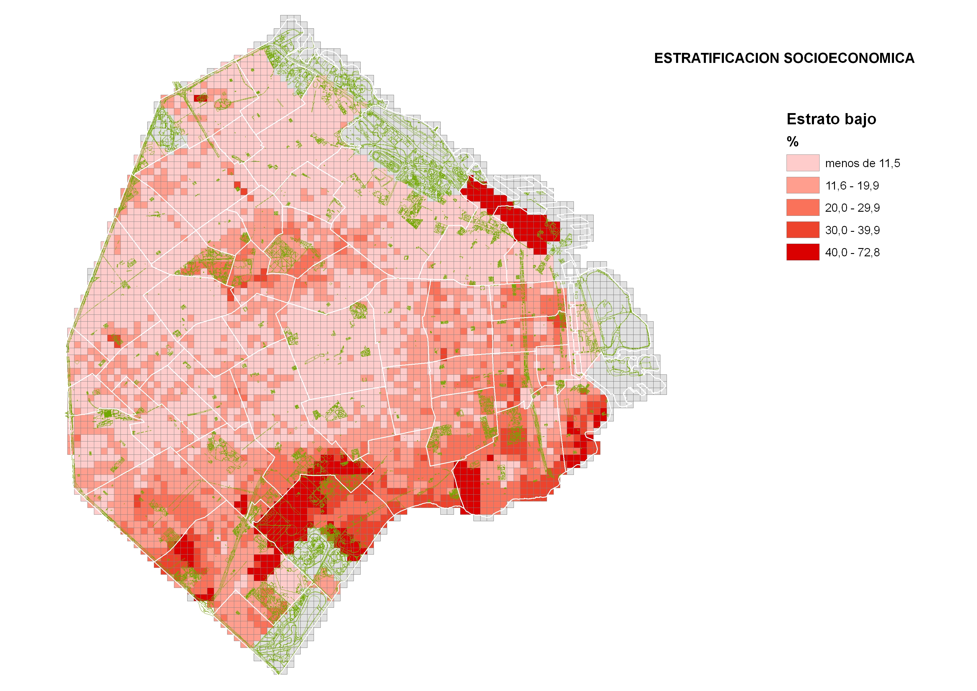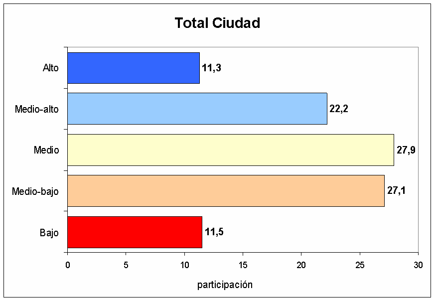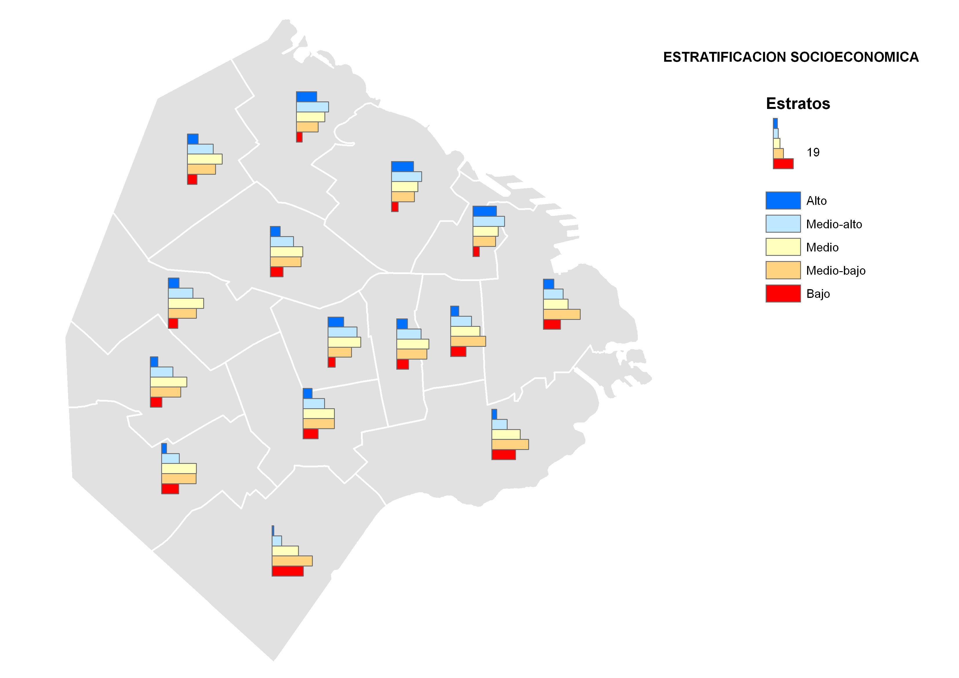 Porcentaje de la población que pertenece a cada estrato según comuna.
