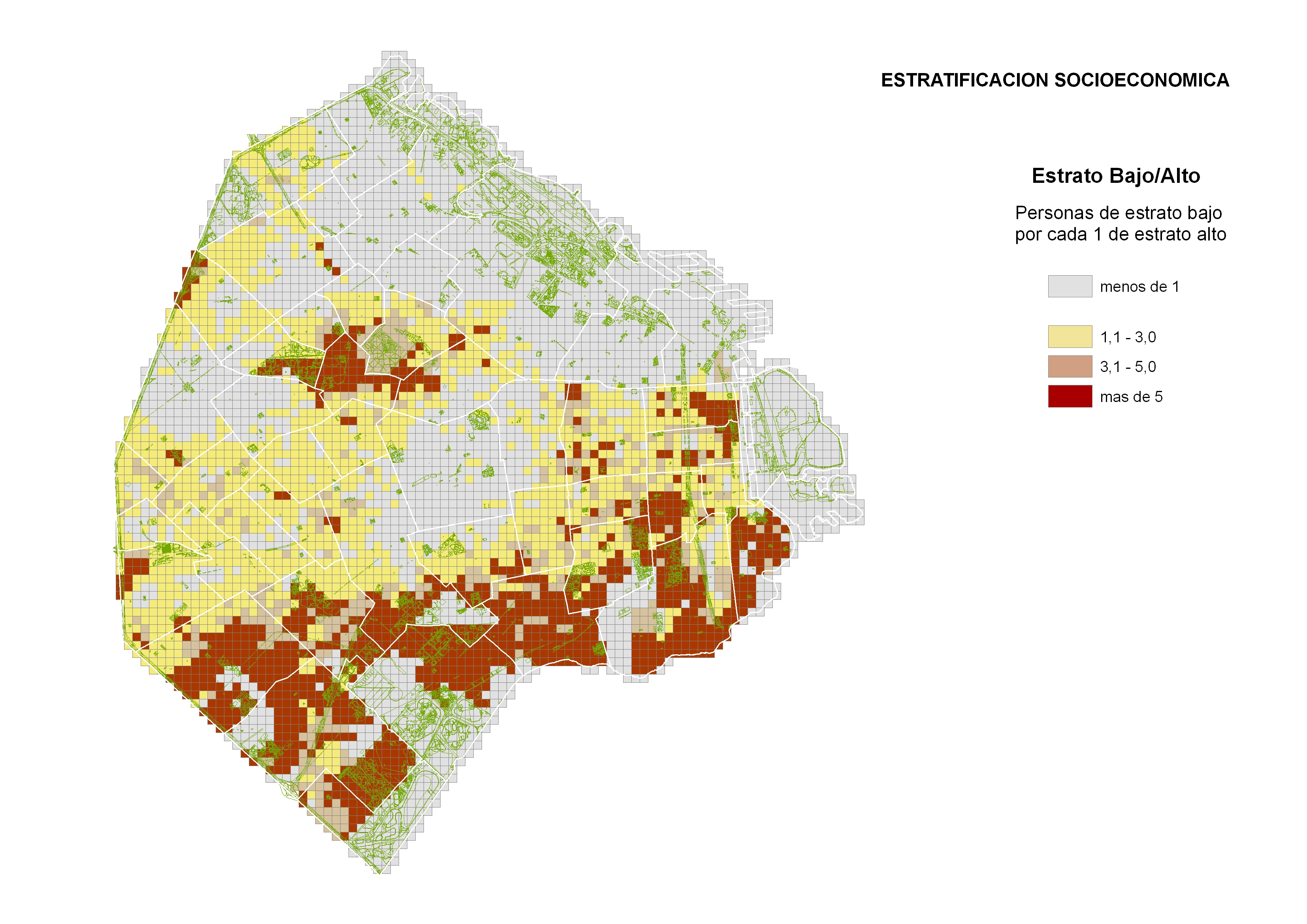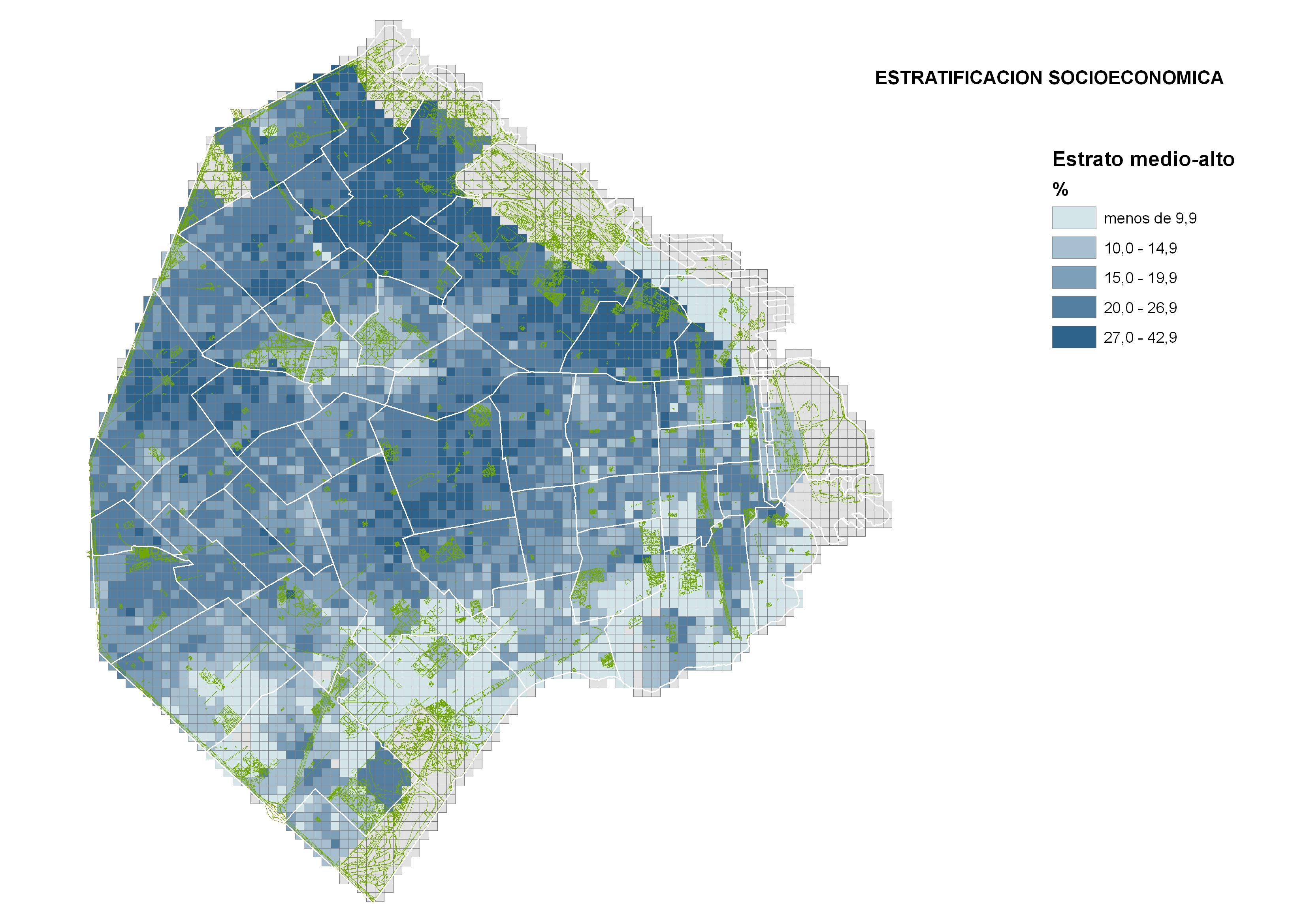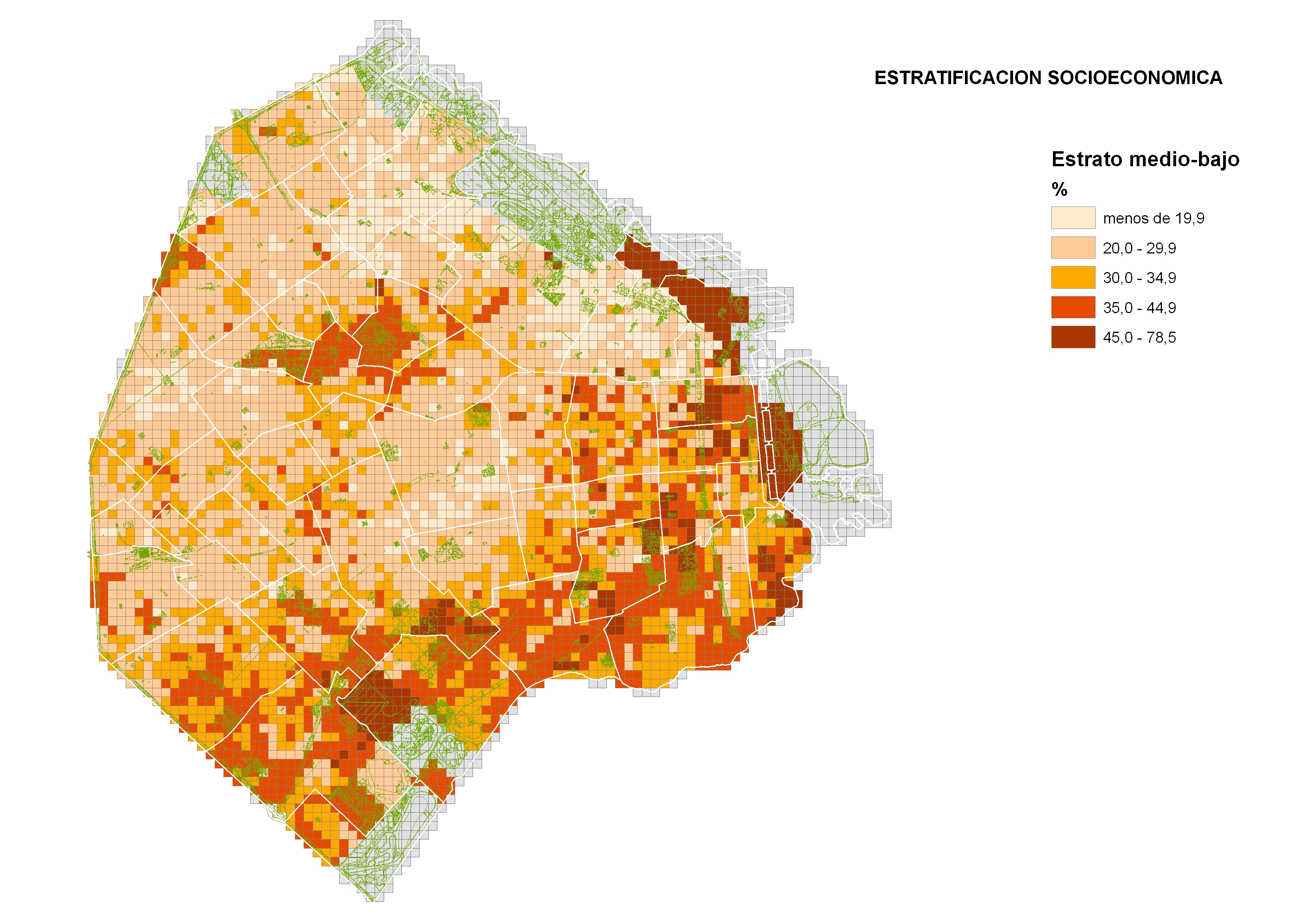 Porcentaje de la población que pertenece a cada estrato según comuna.